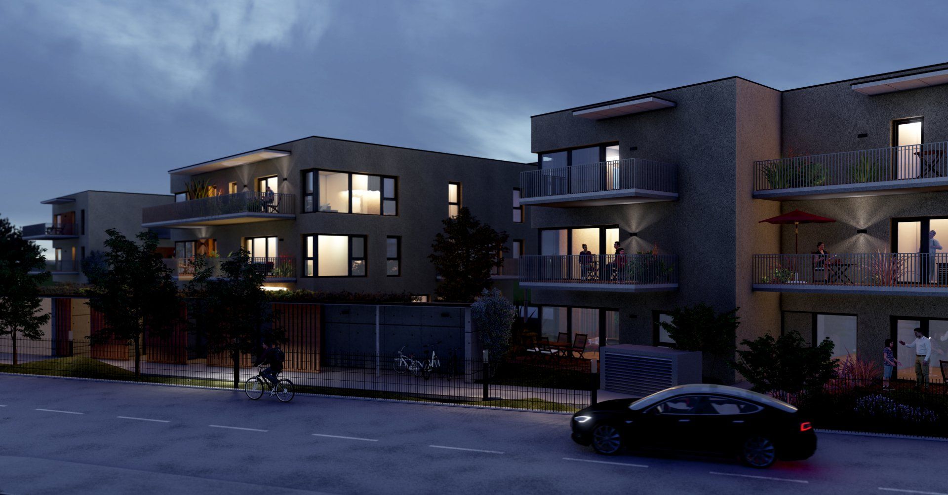 Drei Wohnhäuser (Haus A, Haus B, Haus C)